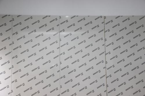 科定墻板,表面鍍鋁鋅鋼板0.5/0.6/0.8MM,表面涂層:梅花白烤漆厚度≥25UM;靜電粉末涂層厚度≥45UM,鋼板背襯復合12MM法國圣戈班石膏板。